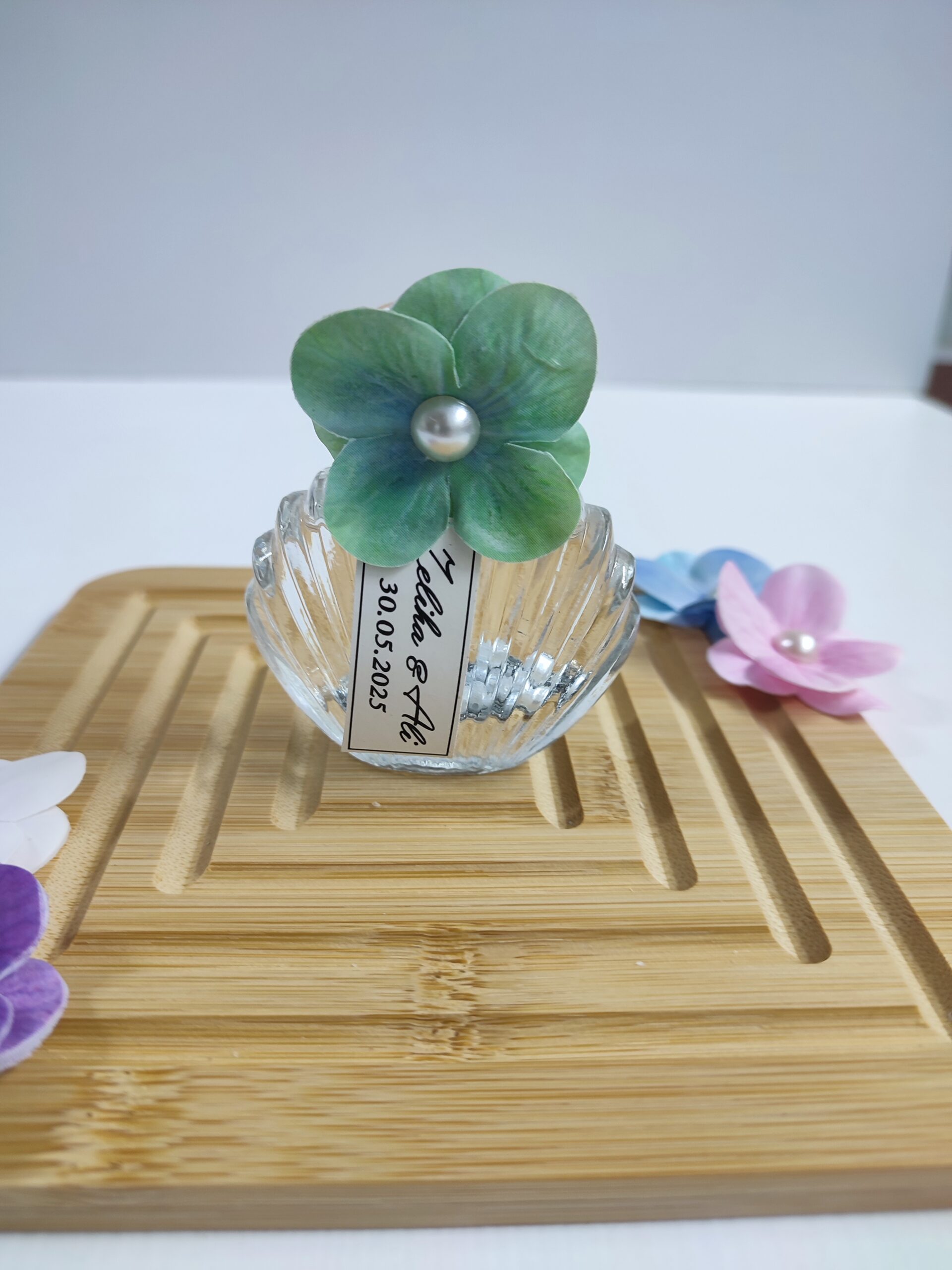 • Ürün üzerinde yapay ortanca ve plastik İnce süslemelidir