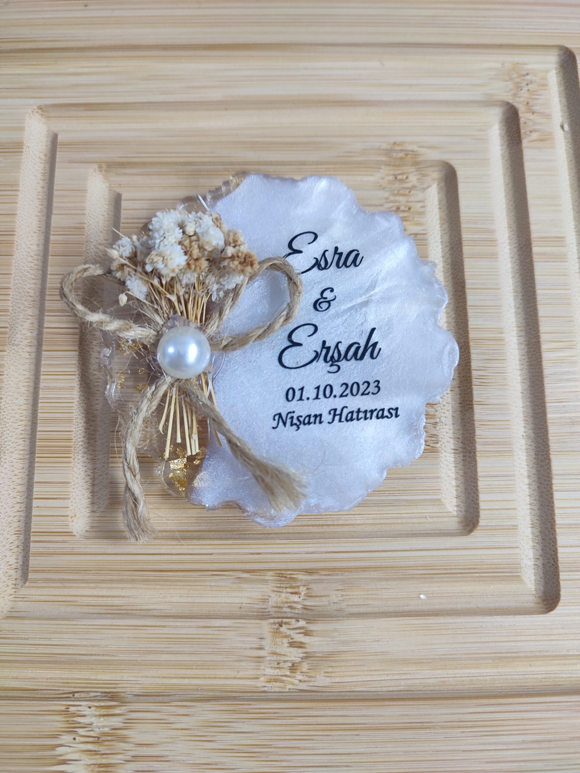 Gümüş Parcacıklı pamuk otlu çiçekli sadece isimler söz nişan nikah magneti Model 23 23.00 ₺