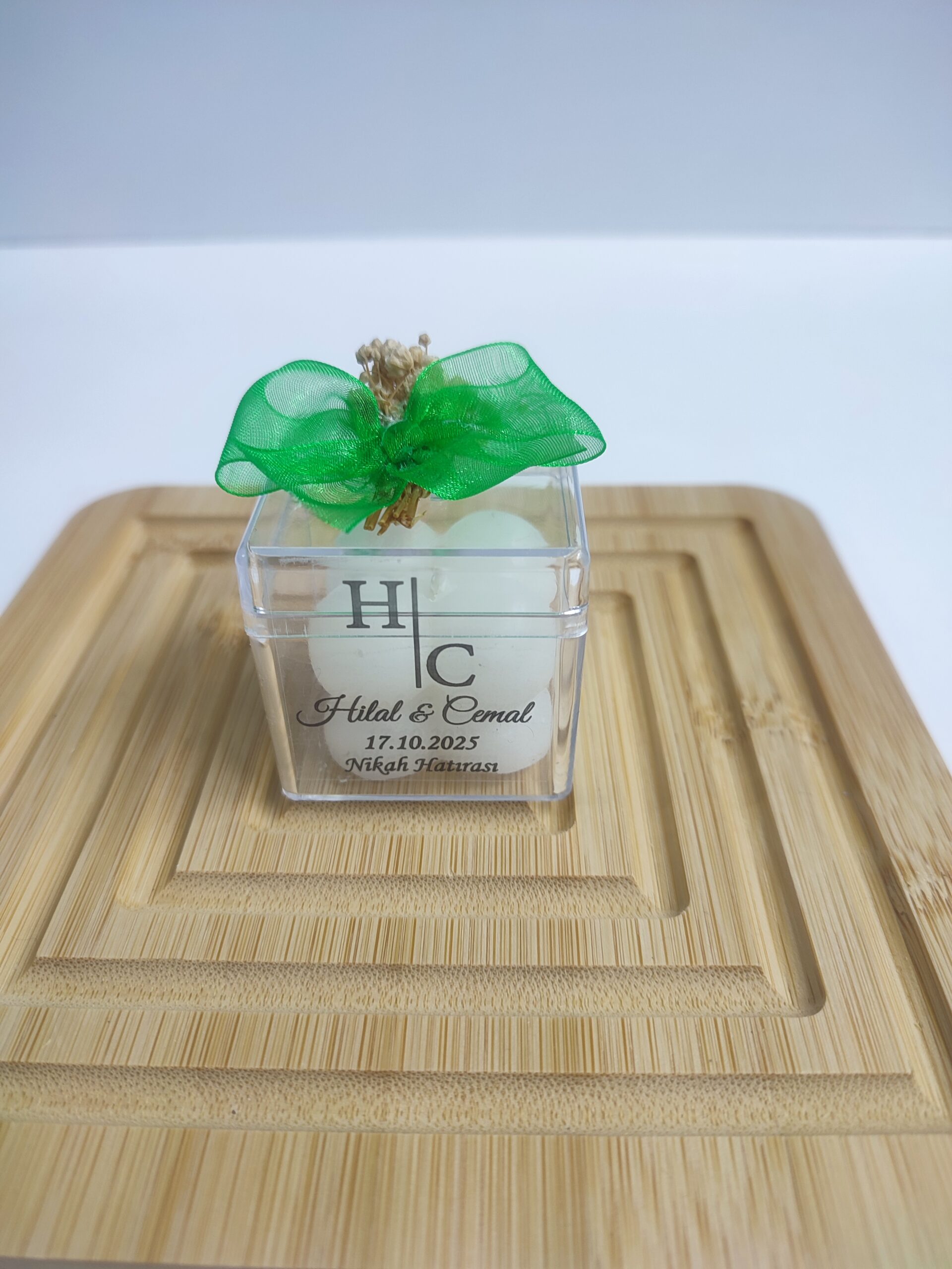 • 4*4 cm Mika Kutu İçerisinde 3*3 cm Buble Mum